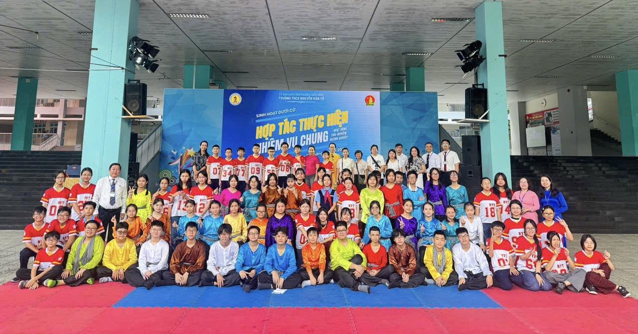 Buổi sáng đầu tuần tại Trường THCS Nguyễn Văn Tố lại rộn ràng trong không khí tươi mới của chương trình Sinh hoạt dưới cờ – Hoạt động trải nghiệm, hướng nghiệp do hai lớp 7/3 và 7/4 thực hiện, với chủ đề đầy ý nghĩa: “Hợp tác thực hiện nhiệm vụ chung”